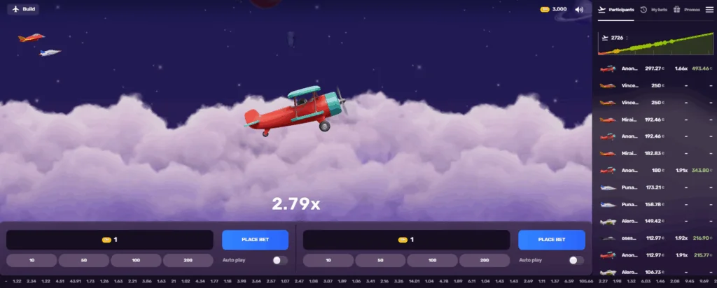 Сразу после старта ставка начинает «взлетать» вместе с самолётом. На экране — графика с ростом коэффициента. Нужно вовремя выйти из игры, пока не случился «краш». Один клик может отделять тебя от потери или крупного выигрыша. Стратегия и тайминг — ключевые факторы.